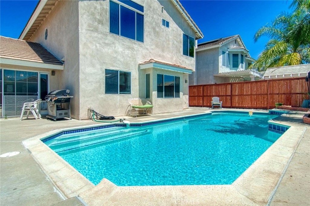 Prime Murrieta location in a highly desired neighborhood! This turn key pool home is sure to bring joy to it's new owners this summer. The location is excellent as it's near some of the highest rated schools in the area, parks, shopping and freeway access. Renovations have been made to the home and it features new paint throughout (except for the 3 bedrooms upstairs), porcelain tile throughout home, new carpet, new blinds, new wood fence and gates around backyard and a downstairs custom bathroom vanity made from a 100 year old barn! The formal living room and dining room are perfect for entertaining. The kitchen is open to the family room which has a fireplace. One bedroom is located downstairs next to a bathroom with a walk in shower. Home has two sliders to access the backyard. The floor plan is a great layout for a family to enjoy with plenty of space. Easy to maintain landscape.