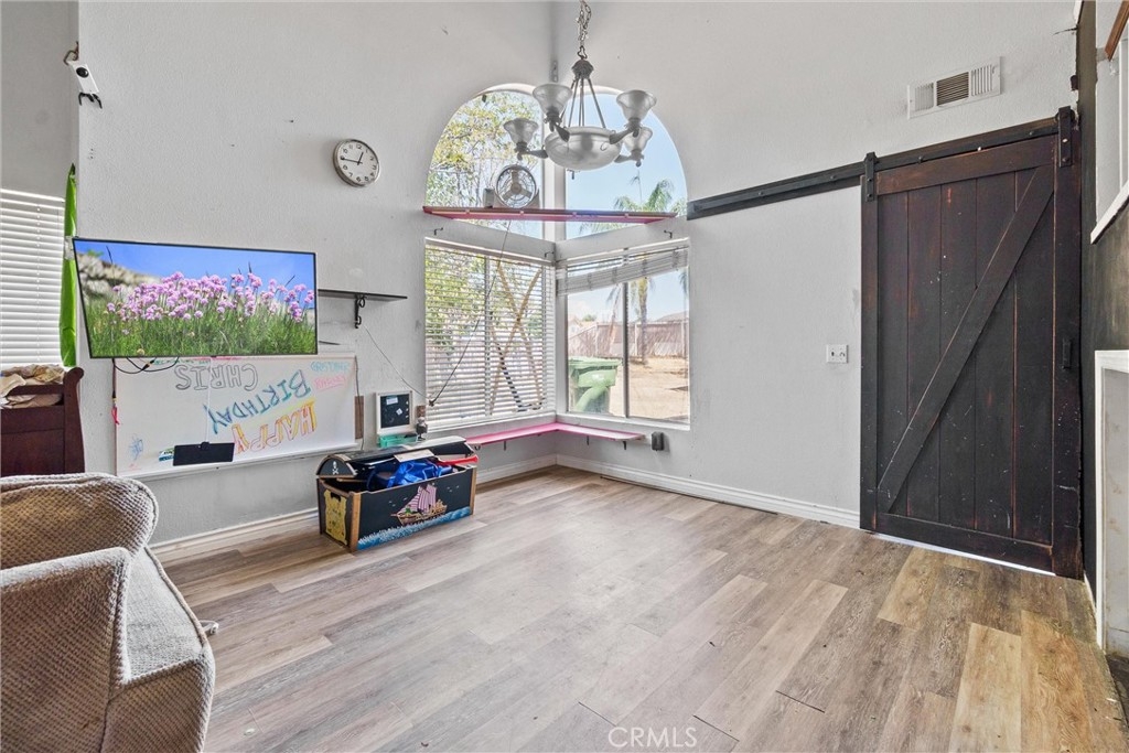 Come home to this sprawling 12,000 sq ft corner lot property with pool , 4 bedrooms(plus bonus room) 3 bathrooms, 3 car garage and large RV parking. As you enter the home you are greeted by 20 ft ceilings and an open living room/ dinning area with fire place. As you pass the living area you are dropped into the kitchen that has an abundance of cabinets, storage counter space, and a kitchen nook. Hard wood floors through out living room, dining and kitchen areas. 1 bedroom downstairs with walk in closet and access ato full bath. Upstairs the master bedroom is large with oversized sized master bath offering separate tub and shower. Indoor Laundry room with additional storage and cabinetry. Ceiling fans in all rooms. Large private backyard with a covered patio, built in BBQ and salt water pool with water features, diving board and slide!! Property is located near I-15 and 215 freeways, shopping, restaurants, hospital, park and award winning schools! Solar to be paid off at the close of escrow!