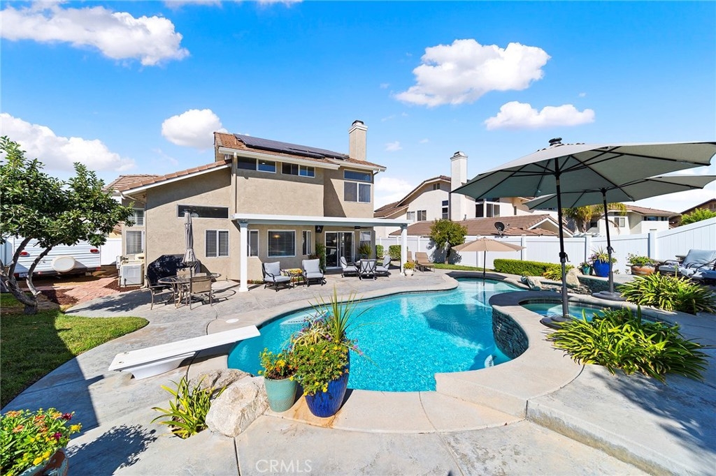 This POOL home is an UPGRADED 4B/3BA, 3 car garage w/bonus room on a corner lot. It is located in the heart of Murrieta w/top ranked schools in the MVUSD. It is full of new upgrades! Exterior and interior paint excluding 2B, front door w/Ring Doorbell, insulated garage doors w/2 openers, new garage access & sliding door to backyard, and the entire house re-piped ALL done in the last year! New vinyl fencing and patio cover with fan & lights completed in the last few weeks! This home features 1B/1BA downstairs, the Master & 2B upstairs w/bonus room/5th bedroom option w/closet. Bathrooms upstairs have been remodeled but our Sellers didn’t stop there. It is energy efficient w/solar, upgraded electrical panel to 200amps & more outlets in the garage, an AC compression unit, forced air unit, & new ducting in attic just 3 yrs ago. Need space for an RV? There's gated RV access w/30amp electrical hookup, sewer, & water. This home has everything, an updated kitchen, w/new cabinets, appliances, granite countertops, under cabinet lighting, sink, & disposal. Downstairs features wood floors in common areas & plantation shutters in living room. Family room features shiplap wall & fireplace with new mantel & stacked stone. Want to stay cool in the summer? There's a pool/spa featuring stamped concrete & retaining wall with stacked stone. This home really shows pride of ownership!